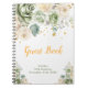 Beautiful birthday shower guest book with sage green and cream floral arrangements. Perfect for a birthday party. The words can be changed to suit your own details or requirements