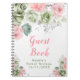 Beautiful sweet sixteen birthday party guest book with sage green and pink floral arrangements. Perfect for a sweet sixteen. The words can be changed to suit your own details or requirements