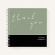 Un diseño minimalista y sencillo en verde sabio y negro. La parte superior es un verde natural adorable con escritura elegante con las palabras "Gracias". La parte inferior es un color negro con dos piezas de texto personalizado en un tipo de letra sans serif mínimo para poner un nombre o cualquier otro texto como prefiera. Si no se prefiere ningún texto personalizado, por favor borre lo que hay actualmente y el resultado será negro. Este diseño sería muy útil como diario de agradecimiento o gratitud.