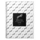 Plantilla de cuaderno en color negro ideal para el cuidado de caballos, entrenamiento de caballos, servicios veterinarios. Este elegante diseño muestra el salto de caballo con patrón de caballo y su nombre .