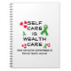 Cuidado Mental de la Salud EL CUIDADO PERSONAL ES CUIDADO DE LA RIQUEZA Cuaderno cristiano con texto PERSONALIZABLE para hombres y mujeres que desean promover el cuidado personal y aumentar la conciencia sobre la salud mental mientras construyen sus negocios. El texto dice 'EL CUIDADO PERSONAL ES CUIDADO DE LA RIQUEZA' con el texto personalizable 'EMPRENDEDOR DEL REINO SABIO' debajo, donde puedes agregar tu nombre u otro texto. El texto está rodeado de grupos de corazones y cintas verdes que representan la conciencia sobre la salud mental. Este Cuaderno de Salud Mental para el cuidado personal sería un gran regalo para hombres y mujeres cristianos empresarios adictos al trabajo.
