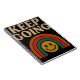 Una cara sonriente brillante y palabras edificantes Sigue andando. Un recordatorio simple pero poderoso para seguir motivado y avanzar.