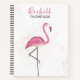 Este diseño presenta un flamenco rosa con un nombre personalizado, para cualquier planificador de diario profesional o femenino rosa femenino, una fuente de letra de caligrafía moderna elegante y de moda, un divertido caprichoso lindo preppy, para la vida costera de la playa tropical de aves, un cuaderno de oficina en casa de la escuela de negocios, personalizar el nombre personalizado, una ilustración de la naturaleza de la vida silvestre de acuarela, un sencillo elegante divertido