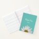 Simple cuaderno botánico personalizado, con un diseño de margarita blanca sobre un fondo verde verde azulado. La parte posterior tiene un fondo verde verde azulado para acentuar el frente, con letras de tipografía en blanco, se puede personalizar con su propia información. ¡Ideal para tomar notas para tu negocio!