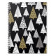 Cuaderno Sencillo patrón invernal. Fondo negro. Oro, sil