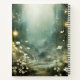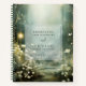 El camino etéreo de flores y árboles del bosque se muestra en este mágico y encantado signo de presupuesto de boda verde sabio en cuaderno, con luces brillantes. Crea un símbolo de tema etéreo en el libro para tu ceremonia y/o repetición.