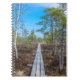 Pintura de sendero en el paseo marítimo sobre musgo en el parque nacional Great Kemeri Bog en Letonia. El pantano en primavera.