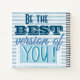 "¡Sé la mejor versión de ti!" Cita motivacional en tipografía divertida en tonos azules.