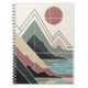 Geometric mountain landscape design combines clean lines and abstract shapes to create a modern, minimalist work of art. Inspired by the natural beauty of mountains, sunshine, and lakes, this artwork features a sophisticated earth color palette including warm terracotta, sage green, soft beige, and deep dark tones.