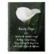 Un cuaderno de tamaño personal, enlazado en espiral, que muestra una foto de una bella y blanca Lily de Calla junto con las inspiradoras palabras de la Oración de la Serenidad. Utilícelo como diario o para mantener notas importantes.