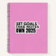 This minimalist notebook features the empowering slogan: "Set Goals. Take Notes. Own 2025."
