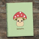 Un cuaderno verde con una ilustración de una seta bonita en estilo caricatura y texto personalizable debajo. ¡Podría ser perfecto para un niño o un amigo que ama los personajes Kawaii y la naturaleza!