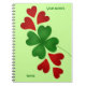 Un lindo cuaderno enlazado en espiral para el Día de San Patricio o cualquier día con un trébol verde de cuatro hojas y corazones rojos. Perfecto para los románticos.