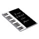 Un diseño blanco y negro elegante de un teclado de piano en el lado, ofreciendo una cita shakesperiana sobre música en un Isabelino-tipo fuente ["si la música sea la comida del amor, juego en" a partir de su noche de Reyes del juego]. Uno puede corregir la cita sí mismo para cambiarla algo más conveniente a su situación y/o personalidad; y también inserte su nombre o el nombre de la persona para quien este cuaderno se piensa como regalo.