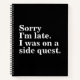Coge esto "Lo siento, llego tarde. Estaba en una búsqueda lateral", divertido diciendo camiseta para mostrar tu sentido del humor usando este estilo de texto básico. para los amantes del arte contemporáneo blanco y negro. Estoy seguro de que puede encender muchas conversaciones y ayudará a romper el hielo. Este diseño divertido es un gran regalo para los jugadores que introverten amigos o familia, y también hace un gran regalo de cumpleaños, de vacaciones o de Navidad. (PUEDE CAMBIAR Y PERSONALIZAR ESTE DISEÑO DE TEXTO O CUALQUIER TEXTO QUE DESEE EN MI TIENDA).