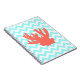 Una silueta del coral-naranja del coral del mar está en un fondo de los zigzags del blanco y del azul de cielo.