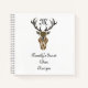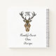 Un ilustracion de un impresionante estante de diez puntos sobre una base tribal negra, hecho con tinta negra. Entre las grandes antemas está la letra "M", m es corta para monograma y puede ser personalizada. Otro campo de texto dice: "Las recetas de ciervos secretos de la familia", también es personalizable. Un regalo ideal para el padre o padre que ama la caza de venados por carne y no por diversión.