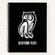 Icono de búho. Símbolo de sabiduría y riqueza. Texto personalizado.