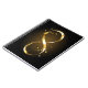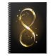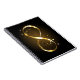Oro, símbolo de infinito de joyas con estrellas doradas sobre fondo negro. Diseño con estrella dorada.