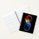 Símbolo de infinito dibujado artísticamente con una hermosa pluma arco iris sobre fondo blanco. Estilo tatuaje.