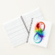 Símbolo de infinito dibujado artísticamente con una hermosa pluma arco iris sobre fondo blanco. Estilo tatuaje.