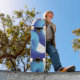 Estiloso Skateboard Cute moderno con fondo geométrico abstracto