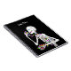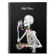 Un cuaderno con mi obra de arte original para Halloween es un personaje esqueleto comiendo dulces.