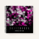 Sketchbook / Portátil con burbujas rosadas Bokeh Effect Dots on a white Background. Todo el texto se puede personalizar con un nombre o cualquier texto que desee.