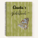 Change the drawing of the butterfly by the one of your preference if you desire. Change the name of the person for this Sketchbook. The Butterfly is a colorpencil drawing in neutral colors on a background of water colored stripes in green tones.