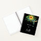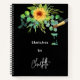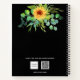 Un fondo negro. Decorada con girasoles, vegetación eucaliptus y pincel. Personalice y agregue un título y un nombre. Letras de color blanco. El nombre está escrito con un guión moderno de estilo de firma con letras a mano. Un cuaderno para dibujos, bocetos, notas y deberes escolares.