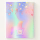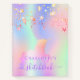 Un fondo de color iridiscente a la moda con unicornio y colores pastel de arcoiris en rosa, violeta, dorado rosa, verde menta. Decorada con estrellas falsas de oro y rosa y un unicornio de color arcoiris. Personalice y agregue un nombre. El título: Sketchbook está escrito con una escritura a mano a la moda con letras con chispas. Para que los cambios sólo eliminen el nombre del ejemplo, deje los espacios o la emoji delante y después del nombre. Utilícelo como un cuaderno de bocetos, dibujando, tomando notas, haciendo ideas, escuela, trabajo en casa.