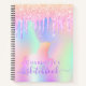 Un fondo de color iridiscente a la moda con unicornio y colores pastel de arcoiris en rosa, violeta, dorado rosa, verde menta. Decorada con tonalidades purpurinas en oro rosa, rosa, morado y un unicornio de color arcoiris. Personalice y agregue un nombre. El título: Sketchbook está escrito con una escritura a mano a la moda con letras con chispas. Para que los cambios sólo eliminen el nombre del ejemplo, deje los espacios o la emoji delante y después del nombre. Utilícelo como un cuaderno de bocetos, dibujando, tomando notas, haciendo ideas, escuela, trabajo en casa.