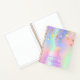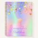 Un fondo holográfico de moda con colores pastel de unicornio y arcoiris en rosa, violeta, verde menta. Decorada con estrellas que caen y un unicornio de color arcoiris. Personalice y agregue un nombre. El título: Sketchbook está escrito con una escritura a mano a la moda. Utilícelo como un cuaderno de bocetos, dibujando, tomando notas, haciendo ideas, escuela, trabajo en casa.