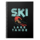 Gráfico que dice: Ski Lake Tahoe. El divertido diseño del esquí para las próximas vacaciones de esquí en las montañas en invierno.