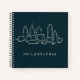 Este diseño presenta un ilustracion dibujado a mano del perfil de Filadelfia en un fondo azul oscuro.