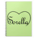La palabra italiana para hermana es Sorella. Hecho en escritura negra y escondido dentro de la parte superior de un corazón.