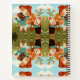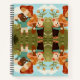 "Spiral notebook cover showing a whimsical, mirrored design. Features cartoon animals, trees, and clouds on a colorful background, creating a playful, symmetrical pattern."