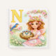 The Letter N notebook features a gentle springtime scene with a fairy holding a nest of baby birds beneath flowering branches. This design highlights themes of growth, care, and new beginnings, making it a meaningful addition to spring learning environments.