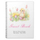 Pretty baby shower guest book with an adorable chick and pink and yellow tulips. Perfect for a spring or summer baby shower. The words can be changed to suit your own details or requirements