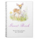 Pretty baby shower guest book with an adorable deer and purple and yellow flowers. Perfect for a spring or summer baby shower. The words can be changed to suit your own details or requirements