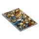 The way the light and textures interact within the piece creates a luminous effect, much like a classic glass window brought into a contemporary space. On this stylish spiral notebook, the flowing lines and rich tones invite creativity to take shape on every page. It’s a perfect companion for your daily notes or sketches, adding a warm, artistic glow to your desk, bag, or office.