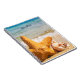Un cuaderno personalizado con una bonita fotografía de una estrella de mar colocada en la arena. Debajo de sus brazos hay dos pequeñas conchas que descansan cómodamente. Está situado en una playa con olas que rompen en el fondo.