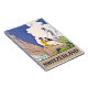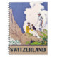 Suiza, cuaderno en espiral. La gente disfruta de las vistas a las montañas durante la temporada estival, con el cielo azul detrás. Poster de viajes de vintage en portada portátil