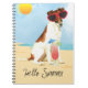 ¡Es la vida de un perro! Estar fresco y celebrar los días de verano del perro con este adorable cachorro Smooth Fox Terrier usando gafas de sol y relajándose con una bebida.