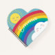 Hacer sonreír a alguien con este adorable cuaderno en forma de corazón. Cuenta con un pequeño y original ilustracion em de un sol y una nube sonrientes y un arcoiris brillante.