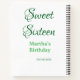 Cuaderno Sweet Sixteen green name date calligraphy boho ret