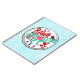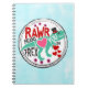 Un cuaderno con la imagen de un t-rex verde usando un sombrero de top negro con corazones alrededor. El texto dice que Rawr significa que te quiero en t-rex.