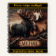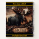 Una hermosa representación de madera tallada de un alce se alza orgullosamente, rodeada de intrincados diseños de la naturaleza, capturando la esencia de la flora y fauna silvestres y el espíritu de la gran naturaleza al aire libre. NOTA Para Cambiar Los Colores De Texto O Borde Utilice La Herramienta Editar Utilizar Diseño