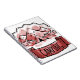 Carpas, árboles y cinta de "camping". Insignia dibujada a mano con matiz de color de agua rojo