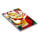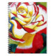 con diseño artístico original de la pintura acuarela de Sacha Grossel de la flor rosa de té híbrido rojo y amarillo contra fondo verde. Este diseño de arte contemporáneo y luminoso presenta un diseño macro floral de gran envergadura, con un motivo botánico, de un estilo luminoso, colorido para los amantes de las flores y los rosas.